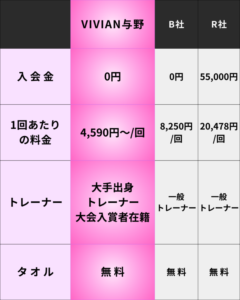 VIVIAN与野はパーソナルジムとなっております。